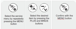 - Select the desired item by pressing the PLUS and MINUS buttons