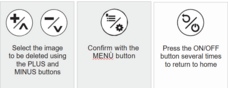 - Select the image to be deleted using the PLUS and MINUS buttons