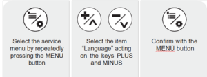 - Select the item “Language” acting on the keys PLUS and MINUS