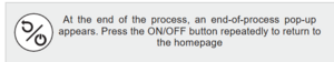 The definitive stop of the recipe takes place at the end of the set time of the last cooking phase or by pressing the START/STOP button. At the end of the recipe, a notification message is displayed on the screen and an acoustic signal is issued.