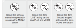 In case the USB stick is present with images inserted in the appropriate folder, after the last image in the local archive you start scrolling through the list of images on the USB memory. Selecting an image on the USB stick, it is imported into the equipment database.