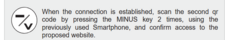 - When the connection is established, scan the second QR code by pressing the MINUS key 2 times, using the previously used Smartphone, and confirm access to the proposed website.